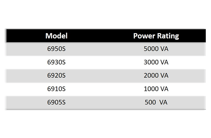 6900S基础型交流电源针对市场不同需求提供五种解决方案,规格容量从500VA最高可达5kVA。