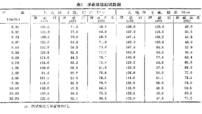 以某单位建造的屏蔽室为对象,我们对其进行了屏蔽效能测试,表1提供了部分测试数据。