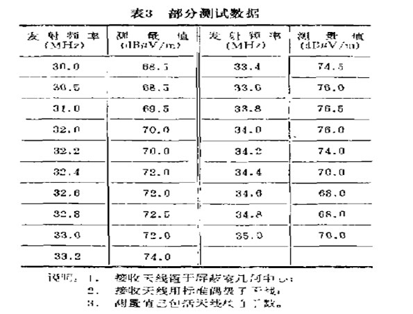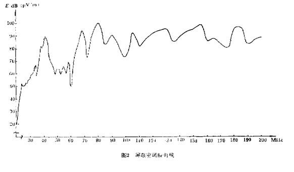 为了掌握实际使用情况,在20-200MHz频率范围内,我们利用高灵敏度接收机进行了精确测试。测试曲线如图2所示,部分测试数据(第一谐振峰附近)在表3中给出。
