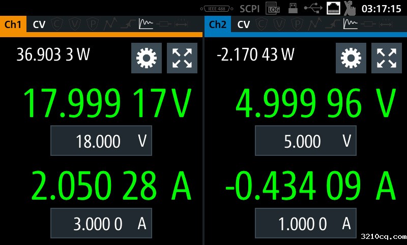 借助双象限架构,R&S®NGL200 电源可以用作源端和吸收端以模拟电池或负载。电源可自动从源模式切换至吸收模式。一旦外部应用电压超过设置的标称电压,电流就会流入电源。电流读数为负显示出这一点。