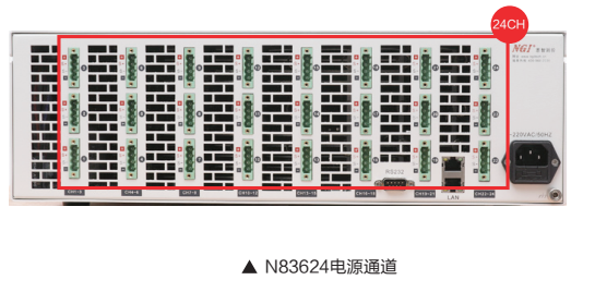 N83624在19寸3U机箱内集成了高达24个可串联的电源通道,为BMS、CMS及类似大规模高密度生产等场景下的ATE测试系统提供了极为紧凑的解决方案。