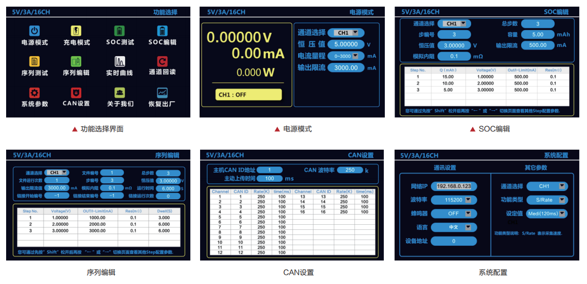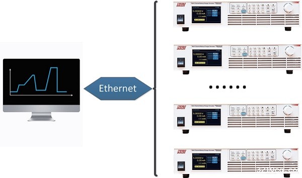当需要多串电池芯时,可多台电池模拟器多通道串联使用,使用者亦可通过Ethernet标准界面进行远端控制及其他自动测试应用。