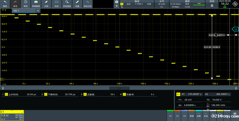 测试波形:从USmin通过tfall ≤10ms下降到-4V,保持60s后通过trise ≤10ms回到USmin,保持120s,完成一次循环