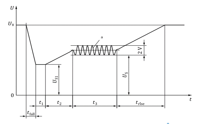 - 测试电压适用于其中一条冗余供电线,而其他供电线则保持在ISO 16750-1中定义的UA处。对每个冗余供电线重复操作。