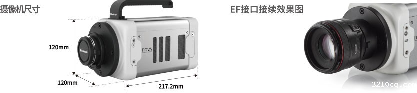 「FASTCAM Nova」是一款兼顾了高速摄像性能和小型轻巧的外观的高速摄像机。它拥有120(W)×120(H)×217.2(D) mm的小巧外观,仅重3.3kg轻巧密闭机箱,1024×1024像素16,000帧/秒 ,640×480像素48,000帧/秒,可以达到220,000帧/秒※1的高性能拍摄速度。此外,还实现了黑白感度ISO64,000/彩色感度 16,000高感度,可以活跃于拍摄燃烧、切削、溶解等各种场合。