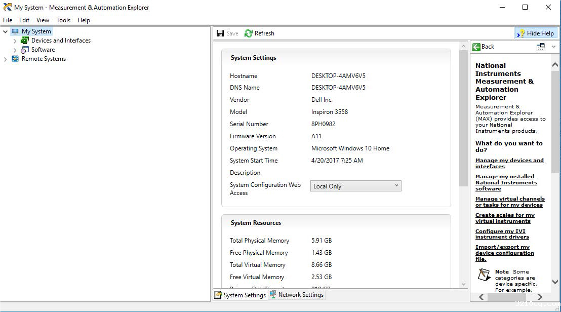 2)通过左键单击桌面上的图标或通过开始菜单找到它来运行NI-MAX