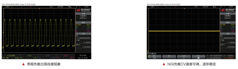 不同电源应用领域要求不同电压响应速度。当负载与电源响应速度不匹配时会引起参数波动降低测量精度,甚至导致数值震荡测试失败。NW6900系列负载可通过界面菜单或上位机软件设置快、中、慢三种电压响应速度,能够匹配各种特性电源。通过灵活设置在提高测试效率同时降低设备、时间、费用等各项成本。