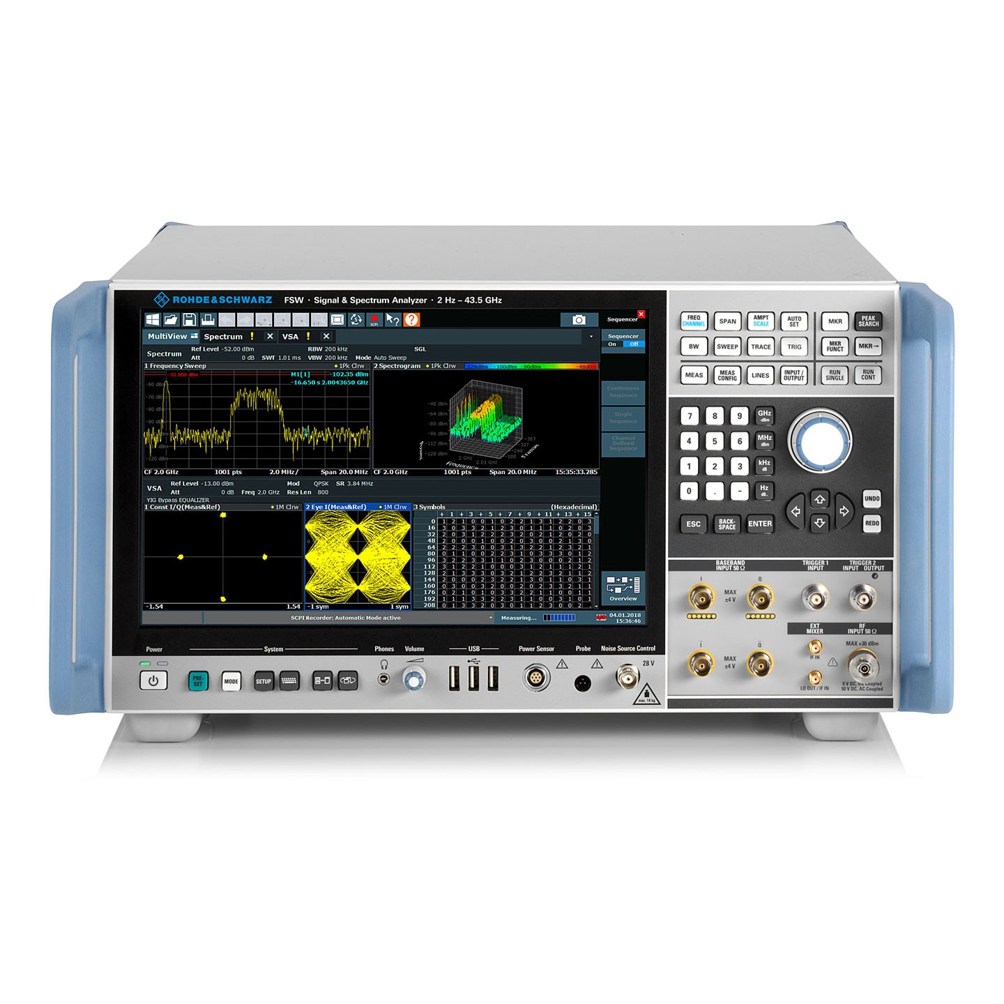高性能 R&S®FSW 信号与频谱分析仪可帮助工程师完成严苛任务。它具备较高的内部分析带宽,可对宽带组件和通信系统进行特征校准。该仪器具备出色的相位噪声,有助于开发适用于雷达等应用的高性能振荡器。