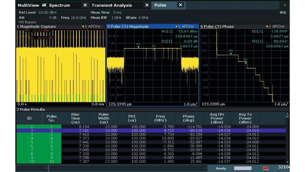 R&S®FSW 具备高达 8.3 GHz 的分析带宽,并提供用于雷达测试的重要分析功能。