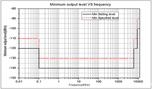 最小输出幅度达-130dBm,满足苛刻的接收机灵敏度测试要求。
